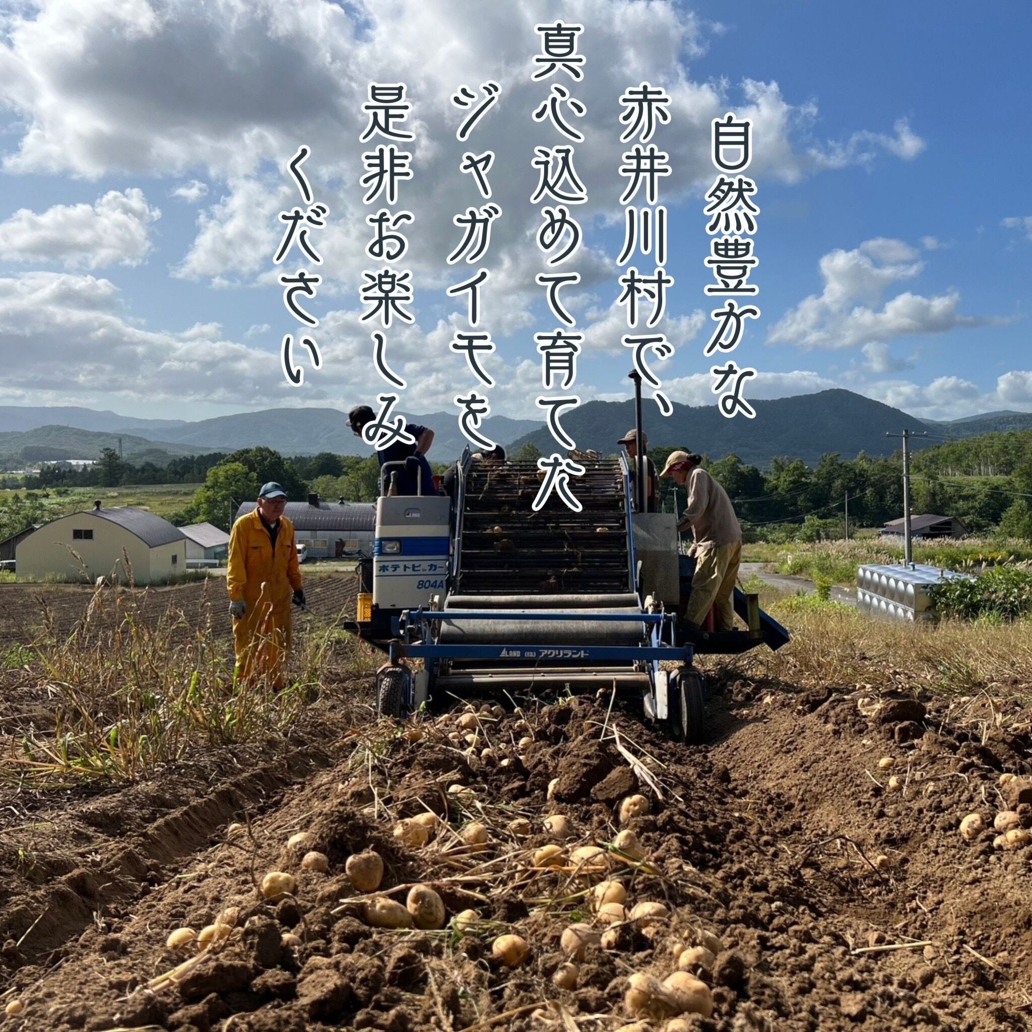 北海道赤井川村で育った秋のじゃがいもです。収穫時期は2025年9月。